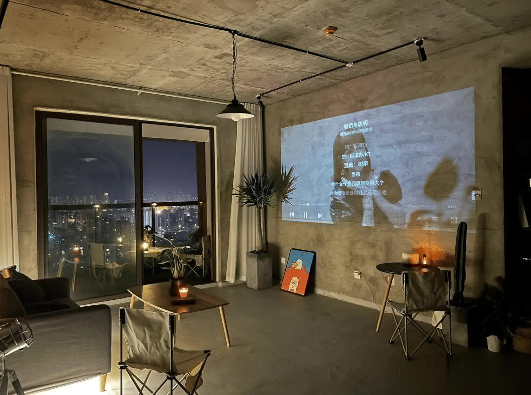 对于年轻人来说,家里可以没电视,但是必须要有仪式感。因此,就买了一台投影仪。光秃秃的墙壁,连投影布都省了。可惜,水泥墙壁不够白,否则画面会更加清晰。