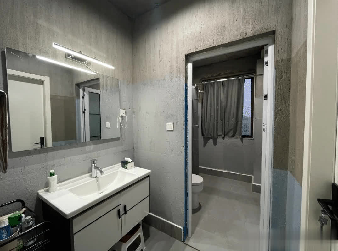 卫生间原本就有干湿分离的结构,直接给墙壁和地板刷上防水层,然后就安装相应的卫浴。